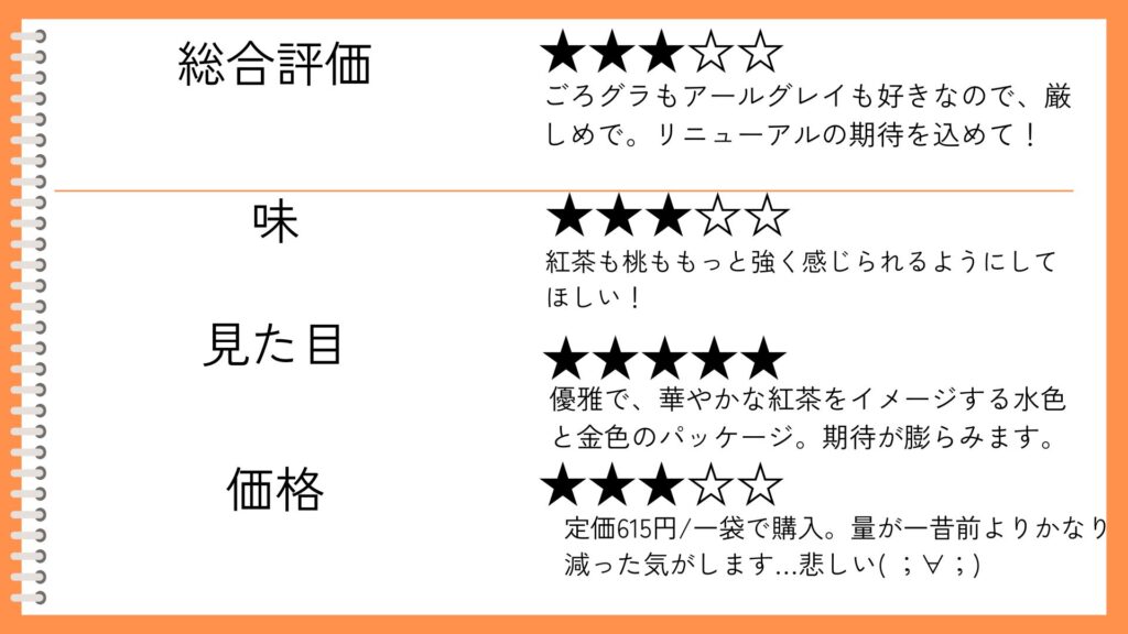 もっと紅茶感アップさせたリニューアル版が出ることを期待したいと思います!