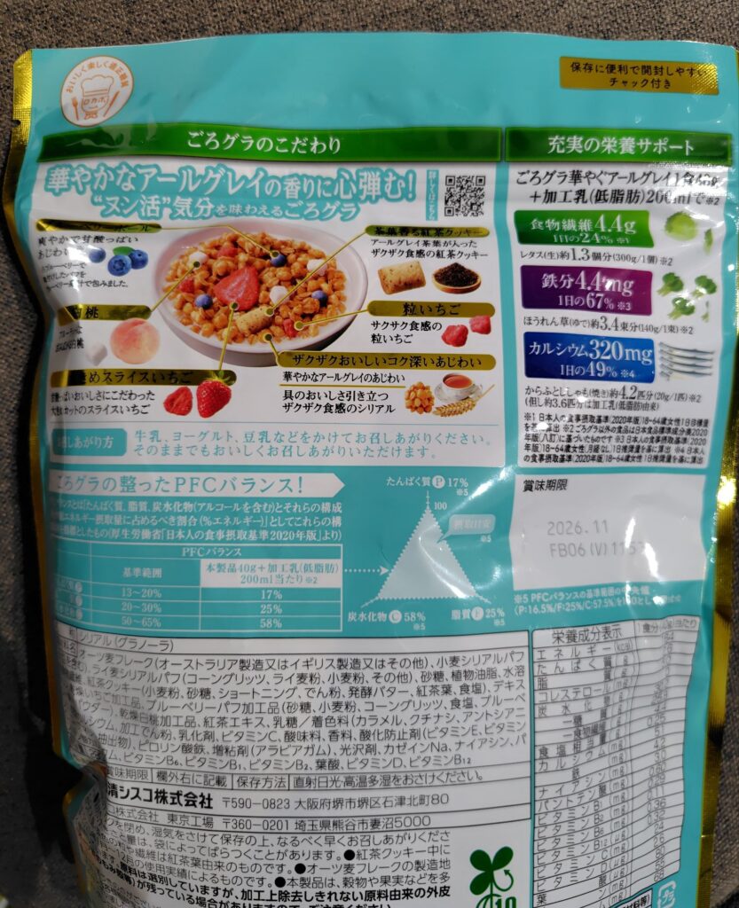 以前から「ごろグラ~いちごづくし~」が好きで食べているのですが、新作の「アールグレイ」味が出たので購入してみました。